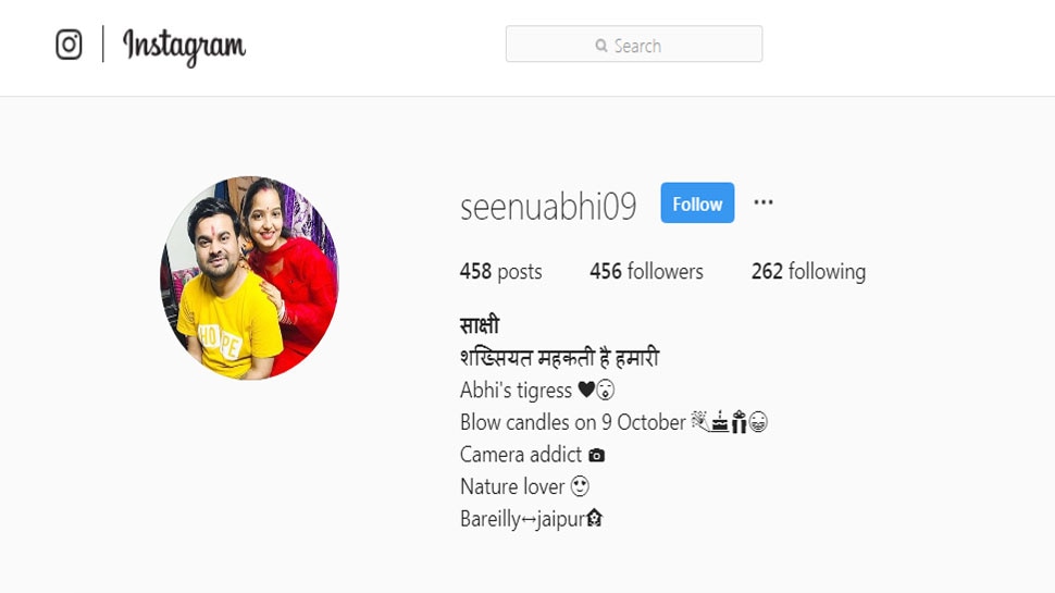 पापा के माफी देने के बाद इंस्टग्राम एकाउंट पर साक्षी ने अपने पति के साथ डीपी लगाई हैं. उन्होंने खुद को अभि की टाइग्रेस बताया है. साक्षी ने इंस्टग्राम पर अपना यह नया एकाउंट 'सीनूअभि' के नाम से बनाया है.